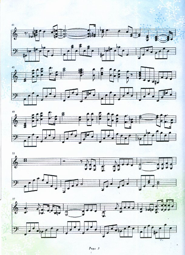 P.3第44小節到第54小節是中間奏(?),接著P.3倒數第二行又回到主旋律到P.4,END。