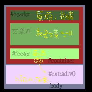只有ie7. ff 支援。這次分別用50%和30%的白色。 這個樣式ie6可用,不會跑框,但極不推薦XD 把png勉強改用gif小白點,老實說挺醜的XD||| 這兩個半透明方法失敗 _opacity: 0.5; _filter: alpha(opacity=50); 因為連上面文字都會變色orz 5. 製作介面 瀏覽器用Avant Browser開測試用帳號寫CSS,並充當ie7預覽。 Mozilla Firefox開smallwu36帳號上傳圖片,FF介面預覽。 MultipleIEs的IE6測試舊版Internet Explorer,還有CSS compressor抓錯與整理版面。 Photoshop CS 抓位置、選色、製作圖片。 筆記本存備份檔XD ∮∮∮∮∮∮∮∮∮∮∮∮∮∮∮∮∮∮∮∮∮∮∮∮∮∮∮∮∮∮∮∮∮∮∮∮∮∮∮∮∮∮∮ 3/10 補圖+修改 1. 上文新增照片3枚。 2. ie6的內文底圖改成原本就有半透明的白區域,文章標題、引用標題和回應標題才用小白點。 雖然這樣單篇文章會黏在一起,但至少比全白的底圖好多了,城堡的整體性較高。 3. 右邊預計改成下圖那樣,因為是大風吹,晚點再修。 ![]() 3/11 修改 1. 公告區(#spotlight)照原計畫上移,底圖過長,月曆還是填入公告區。 2. 取消連結區第二欄(div#links-row-2)。總是造成底圖接不上,不想要了。 連結區移好後才發現,底圖接不上原來是做圖時忘了修改一個地方orz 算了,移都移了orz 3. 取消頁尾描述(#footer),改用樣式專用空白區域(div#extradiv0)。 4. body 圖修好重傳。新增#container底圖。 上兩項是為了當內文高過連結區,用ie開啟右邊連結區可以相接到。 ie的#container包含#footer,火狐的只會圈到#header(橫幅),底下就空白了。 所以在#container放圖,新增#extradiv0,#extradiv0不在#container內,其上層是body 用ie開就能接到了。而火狐用的底圖是在body,有滿版就好,接不上算了XD (階層關係看圖一目了然↓) 5. 網誌描述長寬變大。因為想推薦的東西變多了XD 6. 最新文章和最新迴響下邊距加大。 原先設的padding會被捲軸吃掉,要用margin才可以和其他項目的標題分開。 |