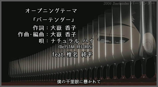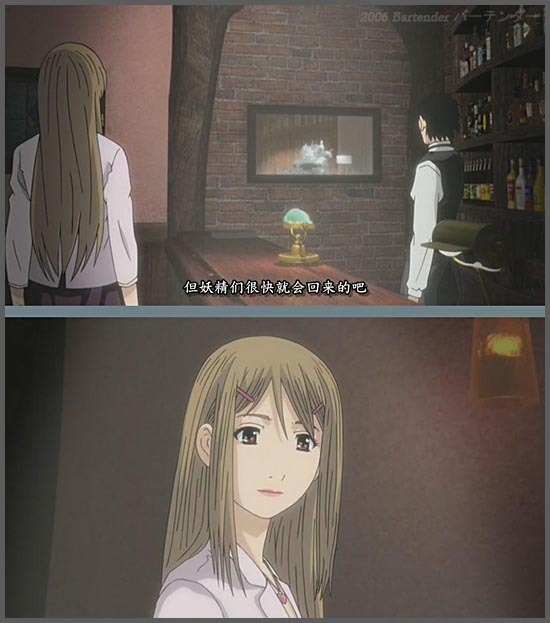 前年秋番(2006年10月)超冷部門,有印象在新番介紹看過,然而跑的論壇完全沒人分享就忘了orz 由漫畫改編,台灣尖端有代理,書名《王牌酒保》,大概和《王牌投手》同樣的取名方式吧,然而動畫中說酒保是看不起「調酒師」的貶謫稱呼呢。封面像《醫龍》。動畫藉由調酒師引出人們冷漠面具背後隱藏已久的溫柔,穿插不少專業術語,對於較年長或有出過社會的朋友來看或許感觸才會深。我其實幾乎喝不了酒,就算是老闆推薦極輕的調味酒也是,所以不用說雞尾酒,任何酒都一點也不懂orz 偶然間在一個有接近3千G動畫的瘋狂GGB閒晃看到,收了第一話試看感覺還不錯,主幹老梗但是處理手法漂亮所以能說服我XD 後面幾話還在收,不知道是否全為短篇,短篇觀看輕鬆,壞處是下集繼續收看的動力較低。且可能流向公式化。說到酒有部漫畫《神之雫》也是在談,我還沒看過內容。雫 = しずく 音sizuku,好像是水滴的意思。這種作者有較深的專業知識的動漫畫,觀賞同時可以藉機學點東西,如《企業傭兵》的作者廣江對於槍枝的了解和喜愛,在書末都有開專欄介紹(原著名Black Lagoon,而且主角們明明不是傭兵="=)。《軍火女王》也讓我有同樣感覺。只看一話的評語不客觀,不過是最直接的感受,關係會不會繼續追下去,和整部感想不同。而這部的第一集我的評價中上。(第一話就讓我評價不好的最近有《槍神 TRIGUN》,似乎是以前很有名的動畫,然而故事嫌蠢orz)