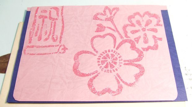 接著蓋在要印的底紙上,塗滿膠水。若是有噴膠就好了,膠水塗左邊右邊就乾掉…