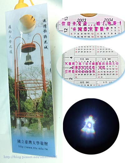 「K書累了嗎?從光柵書籤的透明孔中,對著深夜的街燈、車燈…您將看見其妙的世界…」
