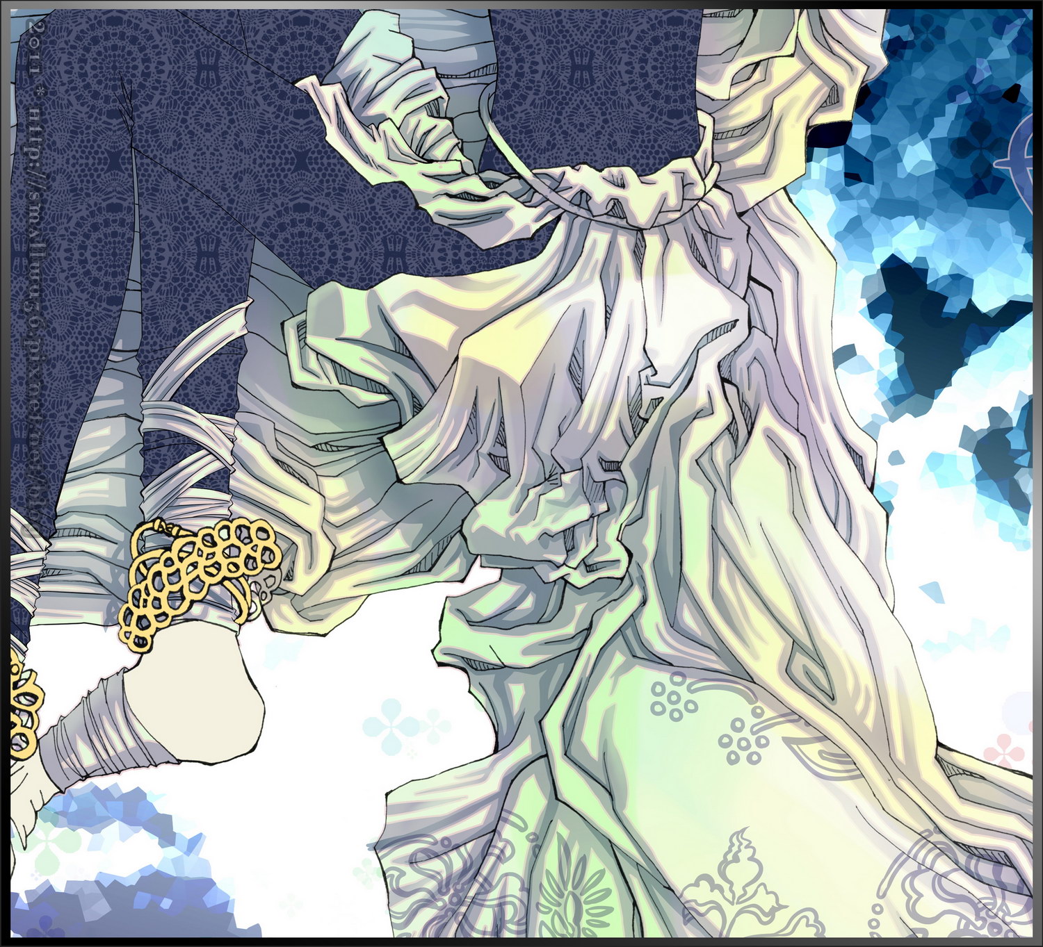 布的皺折怎麼畫都不太自然...而且我仍無法不打稿畫出陰影與立體orz 該怎麼練呢@@ 現實的布和漫畫畫法,還有彩稿畫法,似乎是三回事呢...