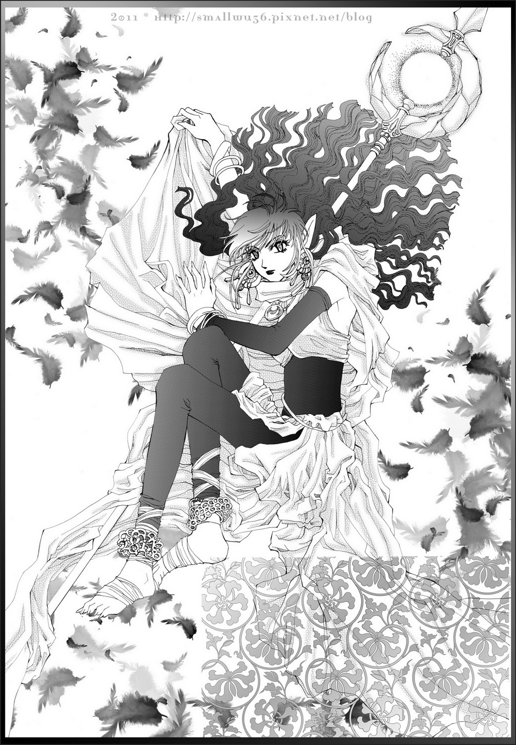 所以人擋住的就不想填了,還用黑底再遮住一些XD 填方格順勢的簽名XDD(其實人物腳環也簽了年份2011 XD 有寶石部分是文字XD)