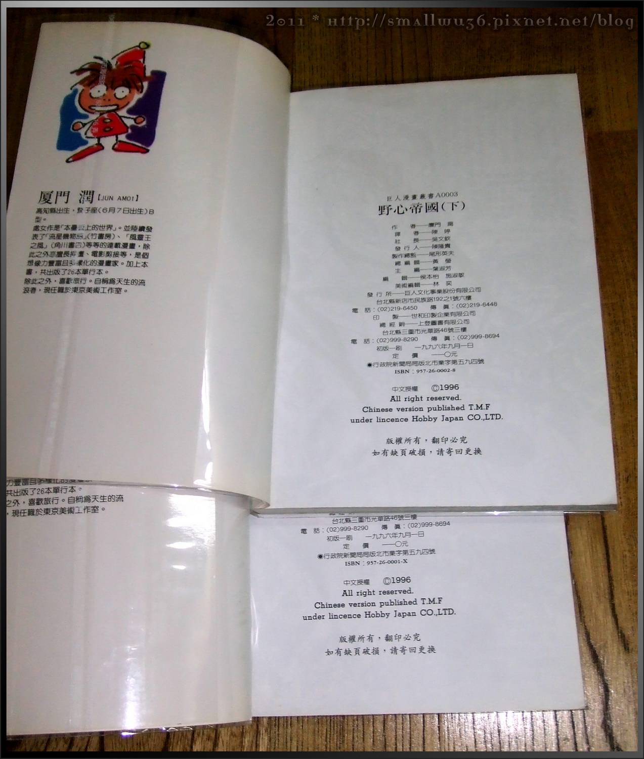 手邊的是第二次購入(之前的和《虹龍變現》一樣被丟掉了orz) 很少聽到的巨人文化~紙質意外的好!15年前的漫畫現在紙還是白的耶!!