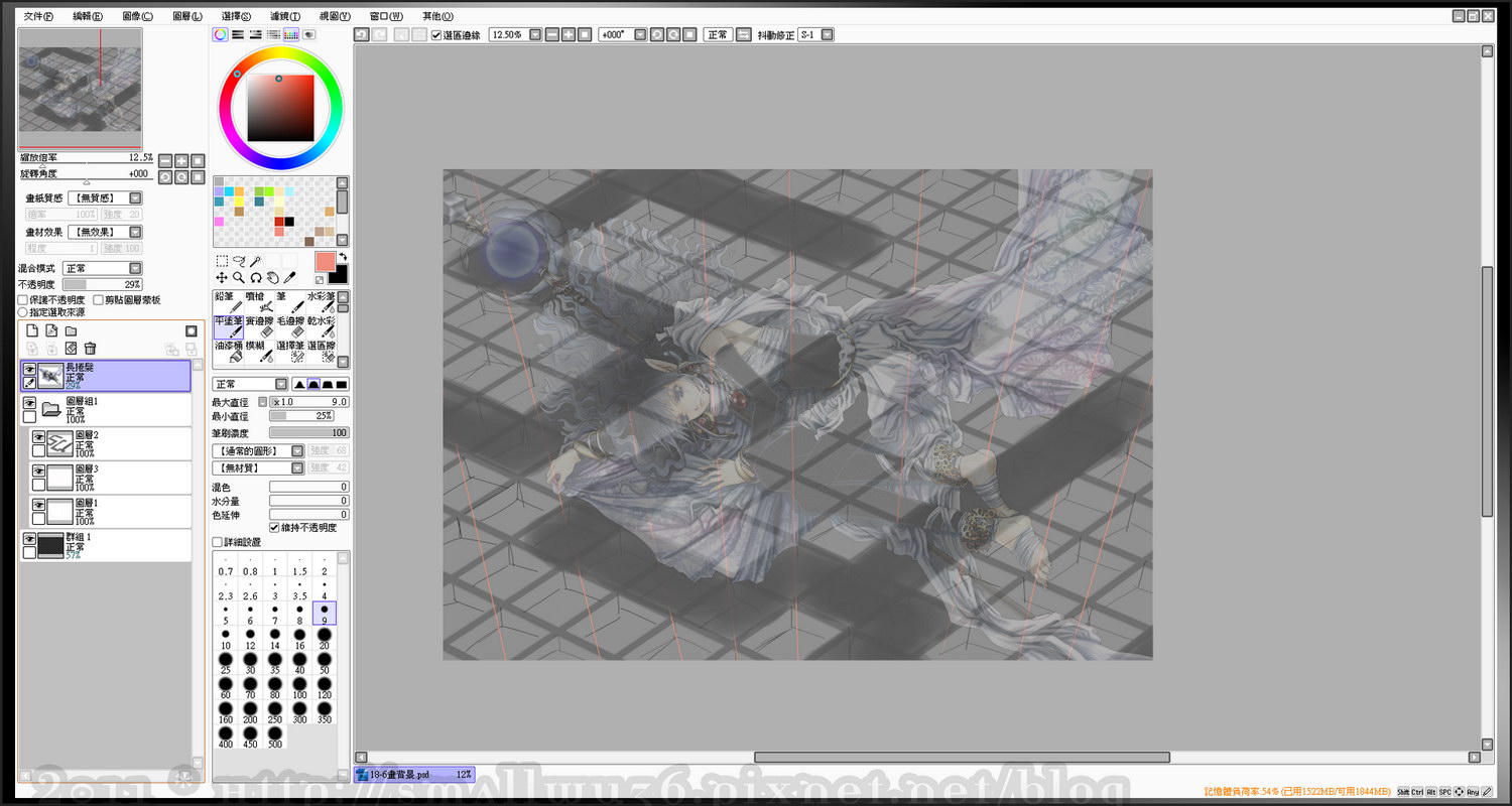 於是用得很兇的圖層樣式如顏色、濾色或色彩增值等,還有之前說的畫筆描邊又半透明等東西,都用SAI彌補過去了XD