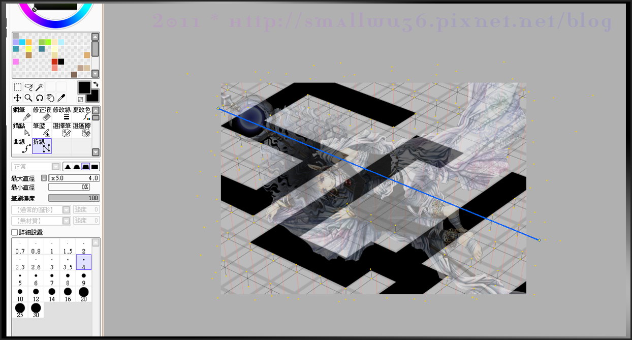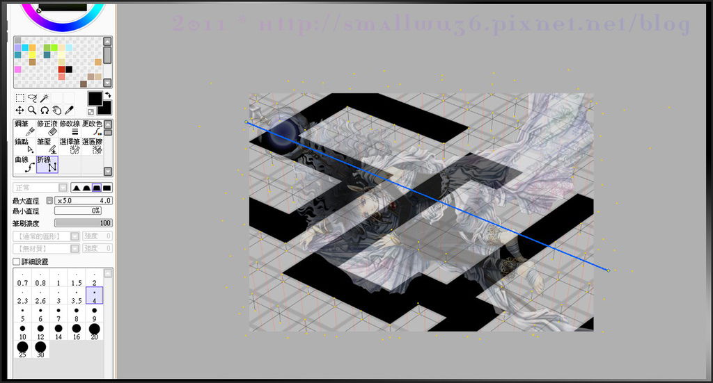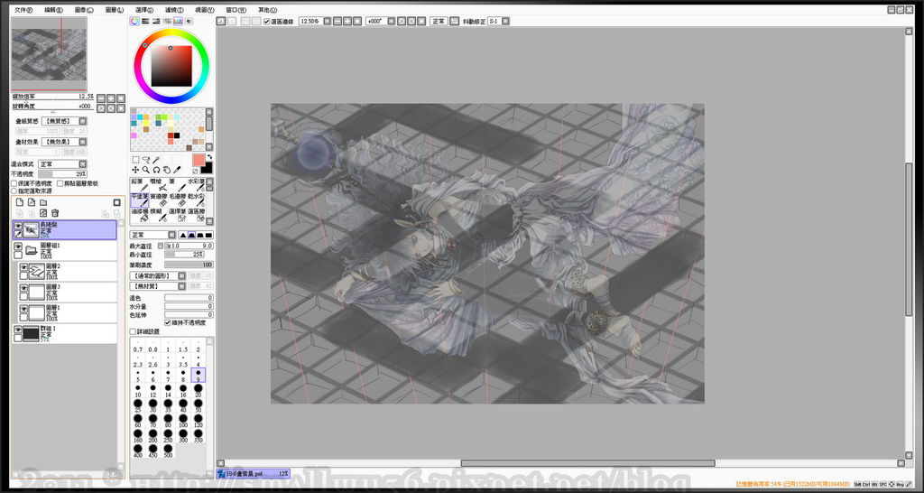轉到SAI畫格子的格子XD 因為希望地面下再鑲嵌時鐘~ 三點透視隨便亂抓的(之後就嘗到苦果了...orz)
