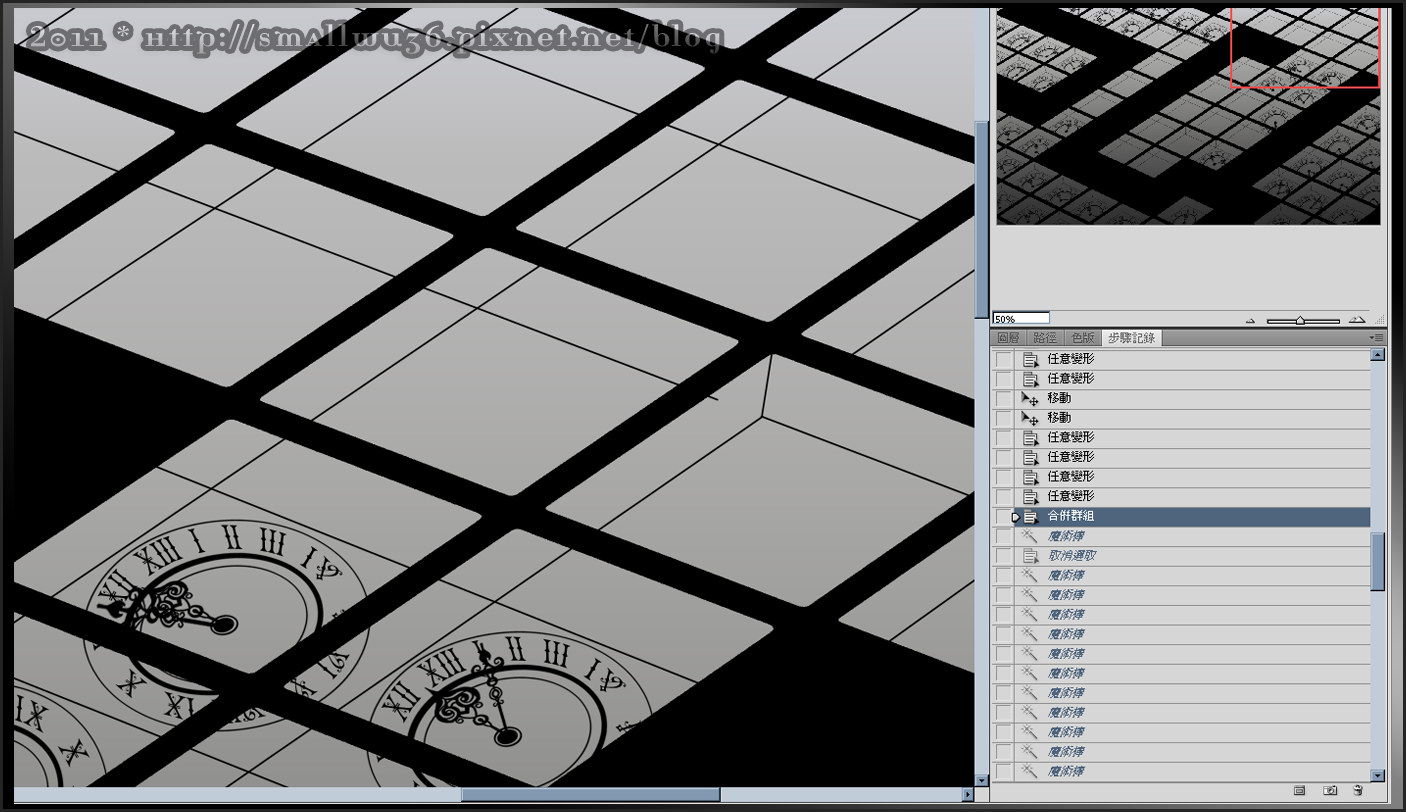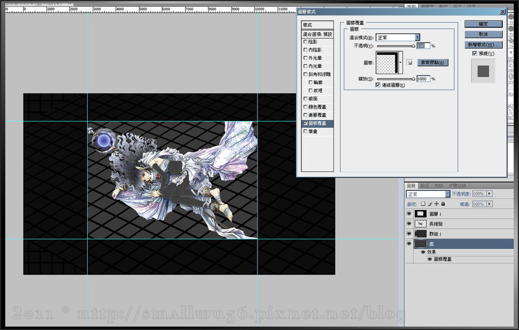 用PS圖層樣式填滿圖樣~滿地正方形格子就畫好了XD(這招很多年前就用過了,只是當時做的圖樣相反XD)