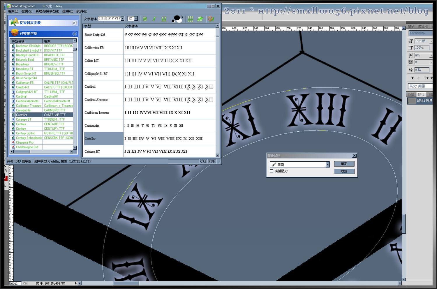 開始畫時鐘。選好字型,PS能依路徑填文字。鐘面順應這個月的流行黑色星期五所以有13 XD