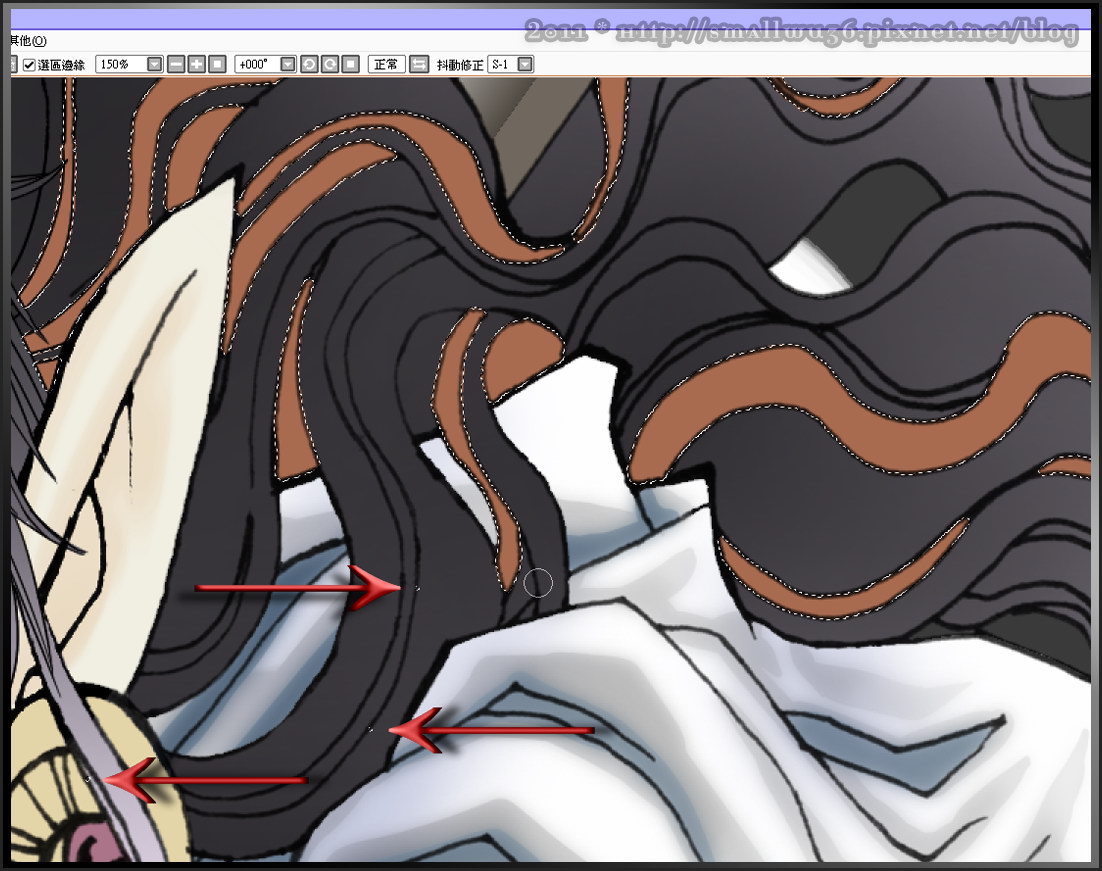 但SAI還會自己多亂圈其他地方(如下圖箭頭處)(箭頭是用ACDSee直接打文字← XD)