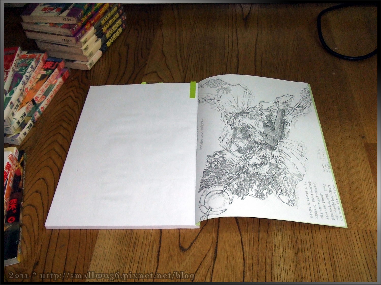 鉛筆稿是2月畫的,已裝訂成冊(草稿放資料本太浪費了,我都用A4或A3影印紙,累積多了再去膠裝~)(B5對我而言太小..@@)