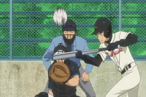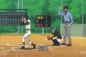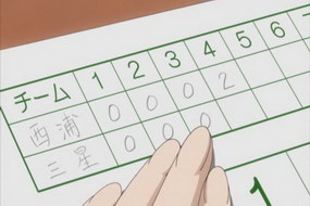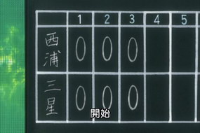 就先研究這張吧:) 動畫第7話,練習賽 西浦VS三星 第7局結束。