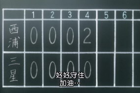 西浦VS三星 第4局上 西浦攻擊 ![]() 因為是在學校的練習賽,記分板為粉筆黑板@@ 但私立三星有獨立棒球場 光這點就讓公立西浦羨慕極了XD |