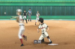 「就算短打失敗,大家還是會關心我」 動畫只講「短打失敗」~ 其實3橋是打出Double Play(ダブルプレー)~順帶害死隊友~被雙殺喔XD;
