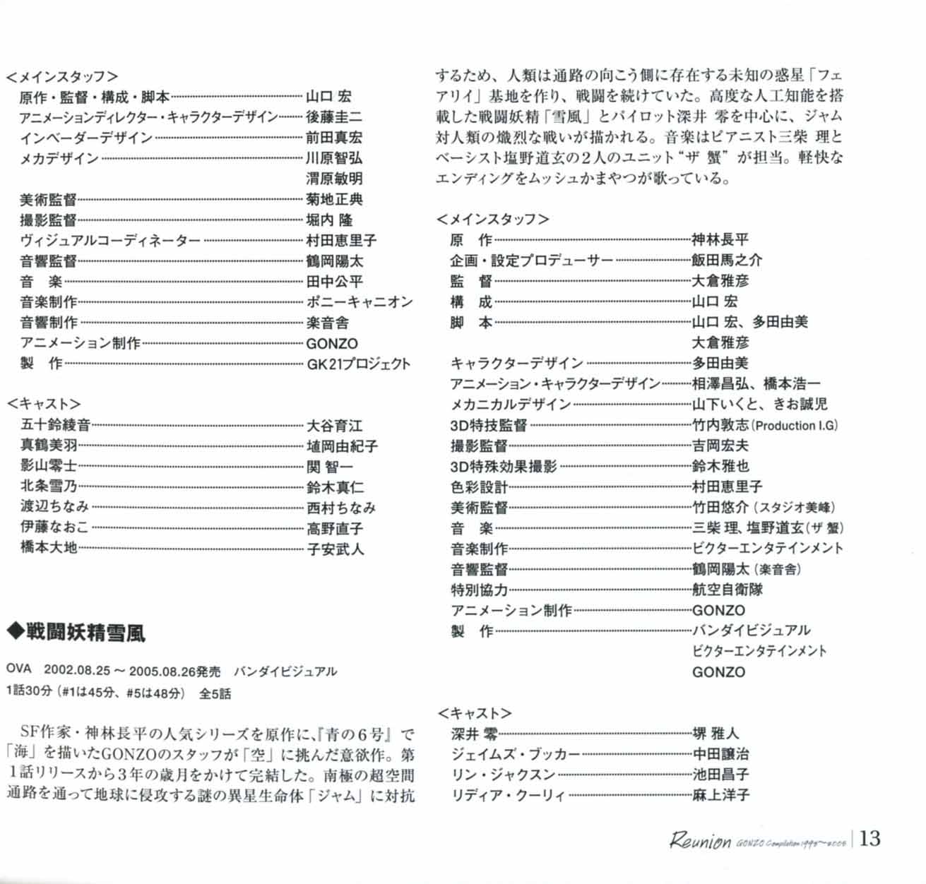 現在要我推薦動畫,我可能會推的就這部戰鬥妖精雪風、BACCANO大騷動、攻殼機動隊(畫面有崩)