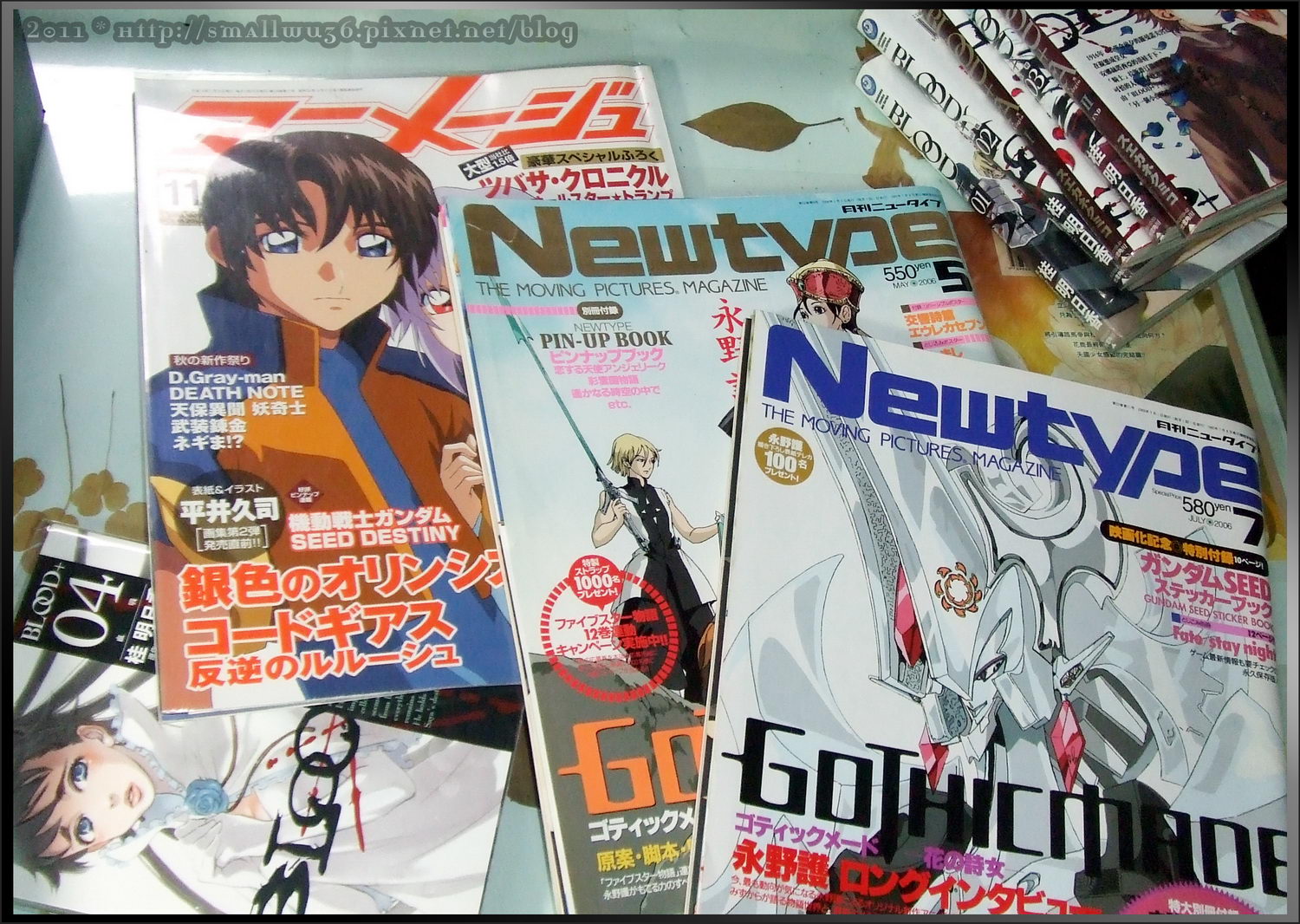 | Newtype上連載的スエカネクメコ的漫畫《はじまりのグラシュマ》タイチル考案:冲方丁。(標題設計?冲方丁不是寫文字的嗎?)スエカネクメコ的女角走肉感類型~這麼說來,我還看過他畫的成人向漫畫XD 《成城紅茶館の事情》,GL+BL+一般向(?),台灣有出版,可是我忘了書名,日文作者名又查不到orz |