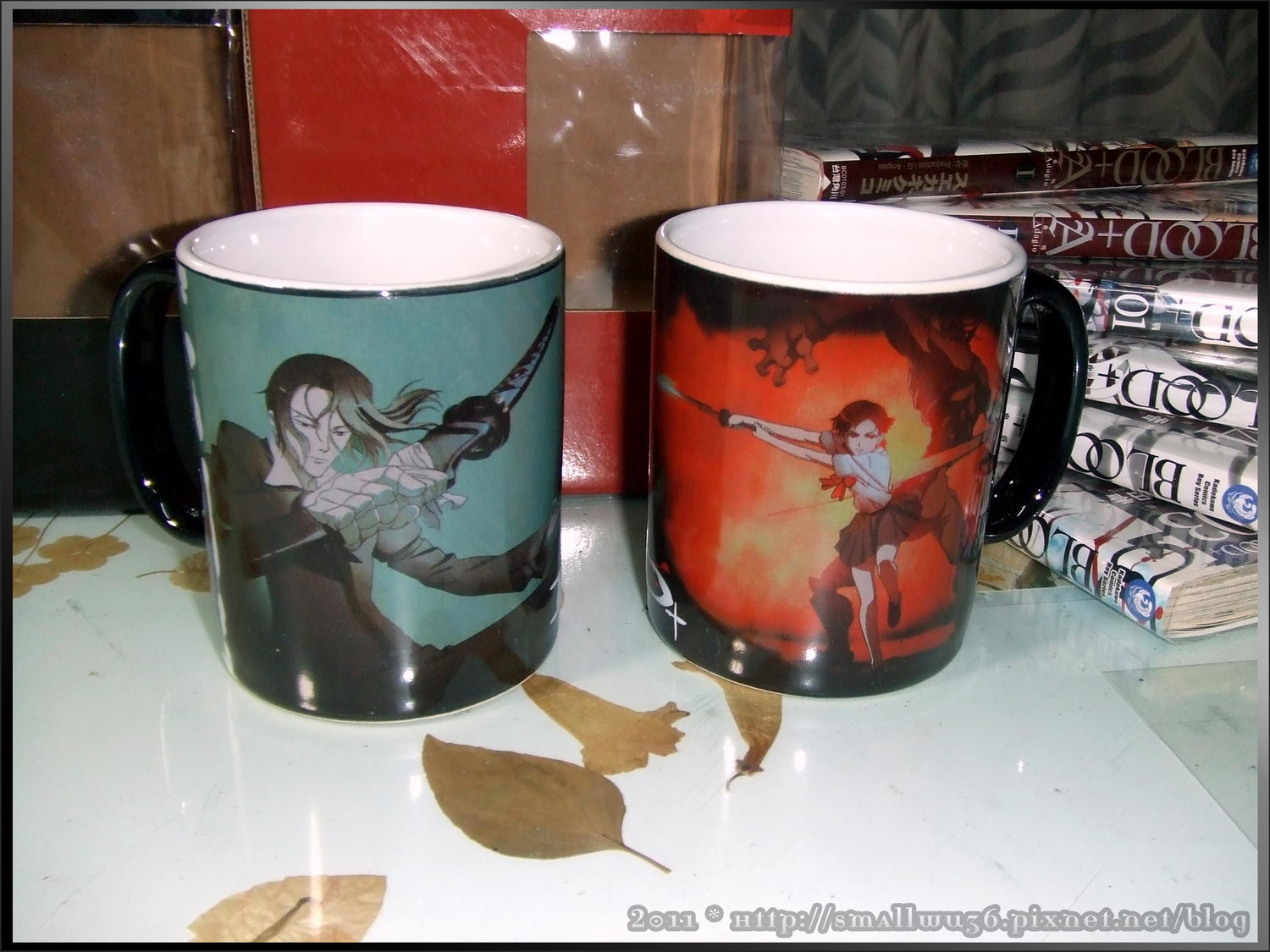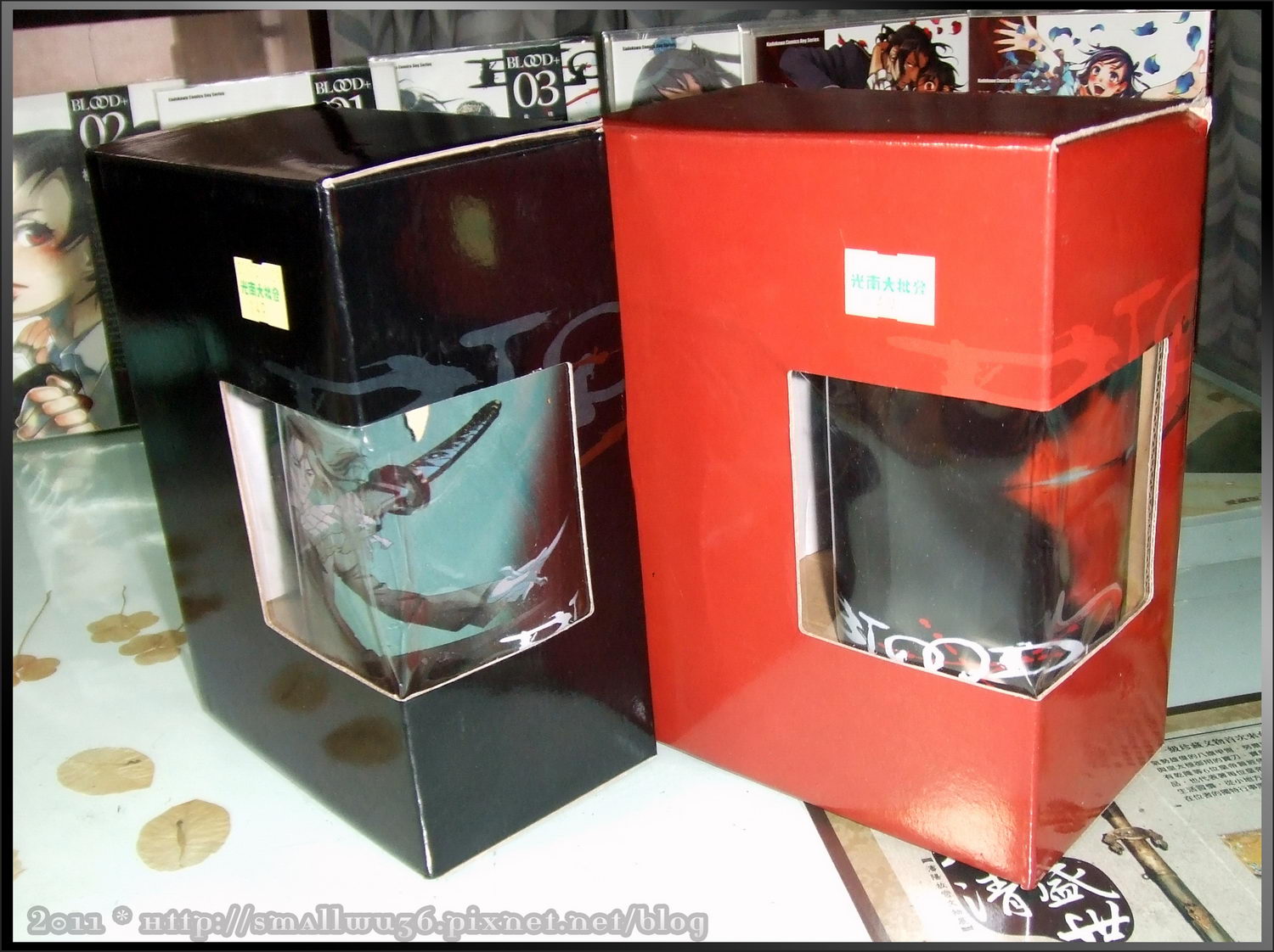 光南偶爾會出現特價清倉的正版動漫週邊,這次就看到BLOOD+(血戰)的馬克杯XD 包裝有兩種,一種是底下那種類似有特典的DVD盒,另種是普通單杯裝的小紙盒。虛榮心膨脹作用(?)我當然選了大的XD 一個NT$49,就兩個都帶了~變成對杯XD |