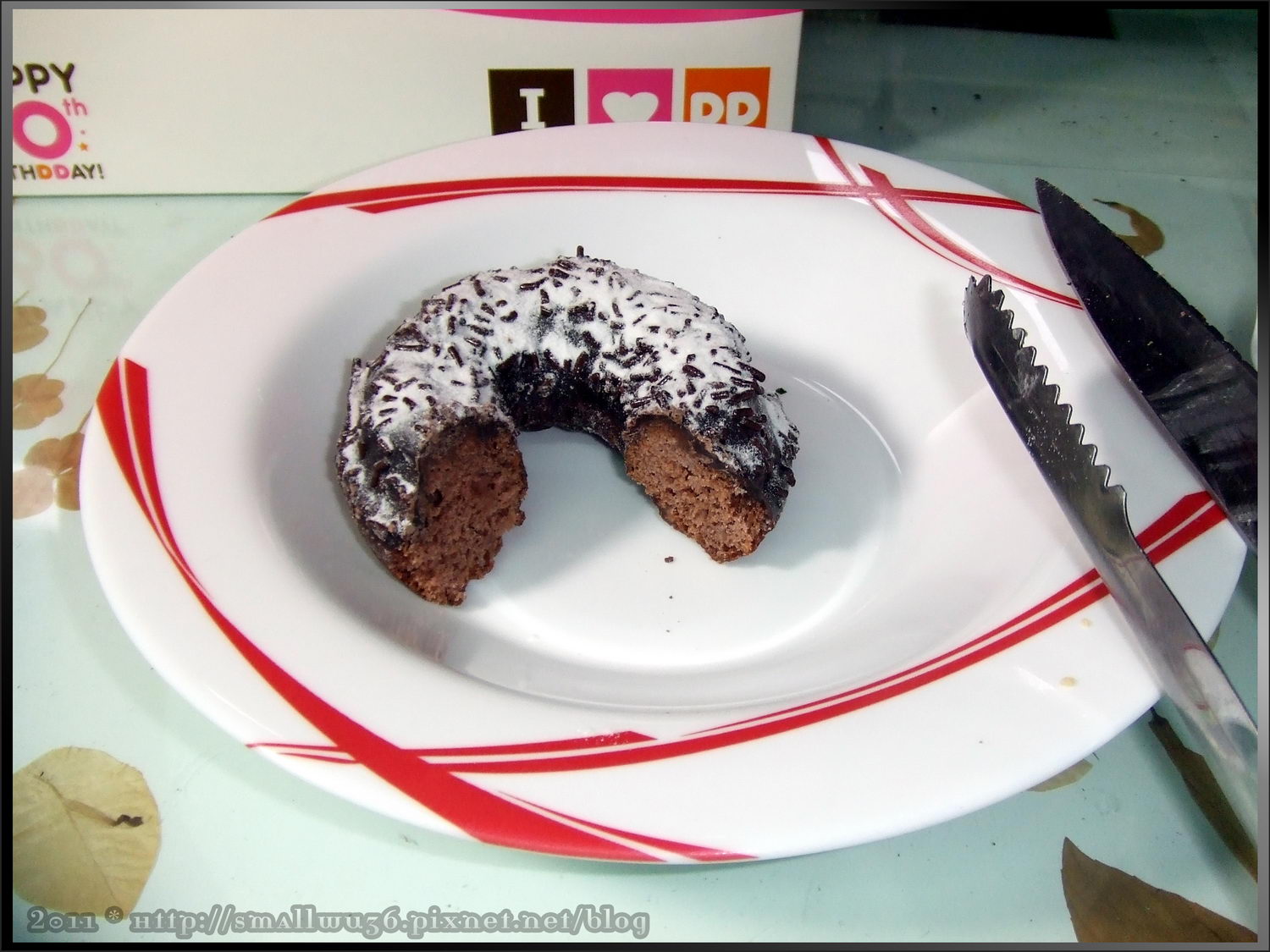 | Triple巧克力棉甜甜圈,說是「棉」甜甜圈,卻十分紮實,咬起來頗硬@@ 但是挺香的~ |