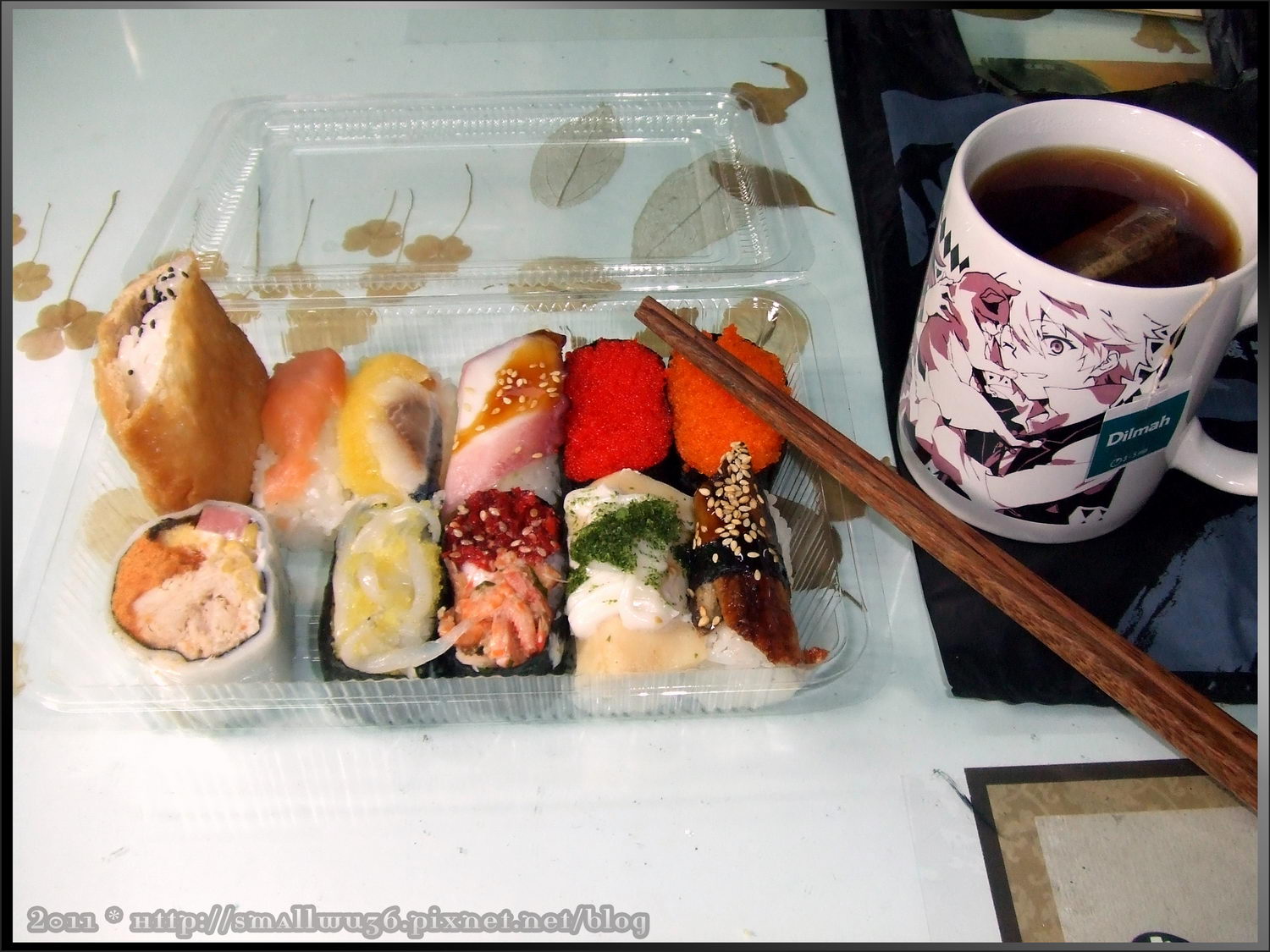 | 以上是昨天吃的。順便偷渡今天的午晚餐~綜合壽司XD 因為聊天中提到龍太朗的網誌而很想吃壽司,結果還是跑去買了XD 吃得比財前副教授準備考試時期還高級XDD(from《白色巨塔》XD) 雖然沒有鮭魚卵,但也有黃色、橘色和紅色的魚卵喔XD 中間紅色的是櫻花蝦耶,真特別:P 重點是一個10元~比SOGO松青超市和爭鮮便宜多了XD(一人去吃迴轉壽司也很怪XD) |
